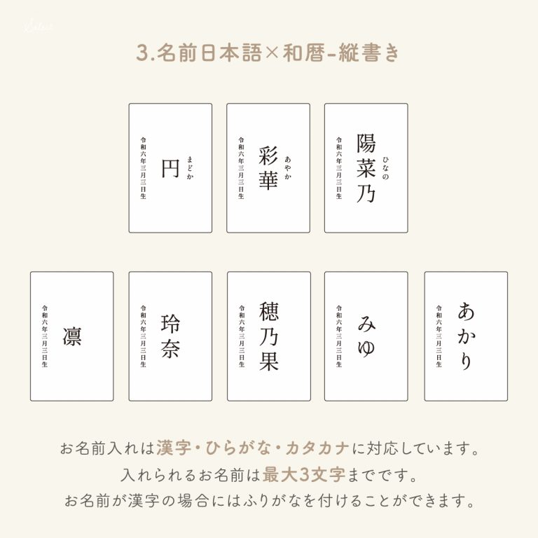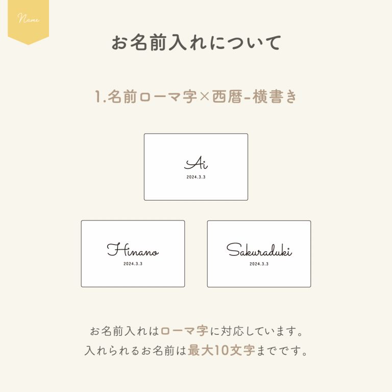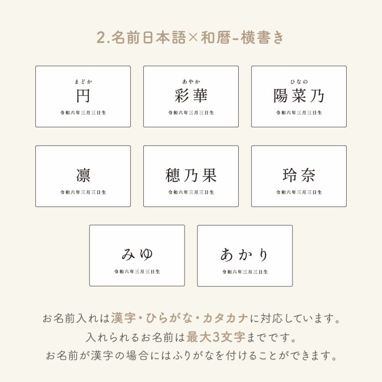 ※お名前・生年月日の文字数や、ふりがなの有無によって配置のバランスが変わります。